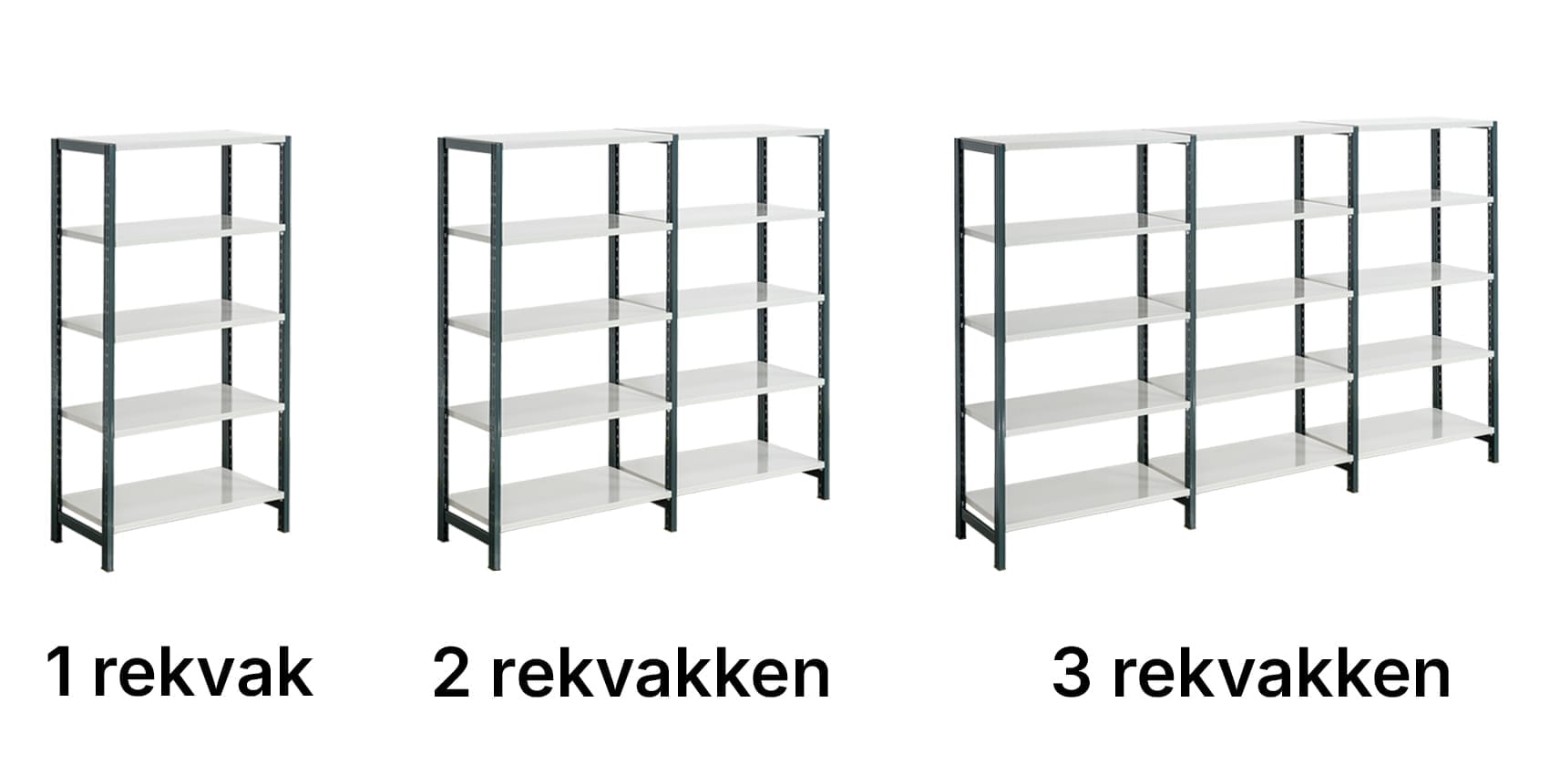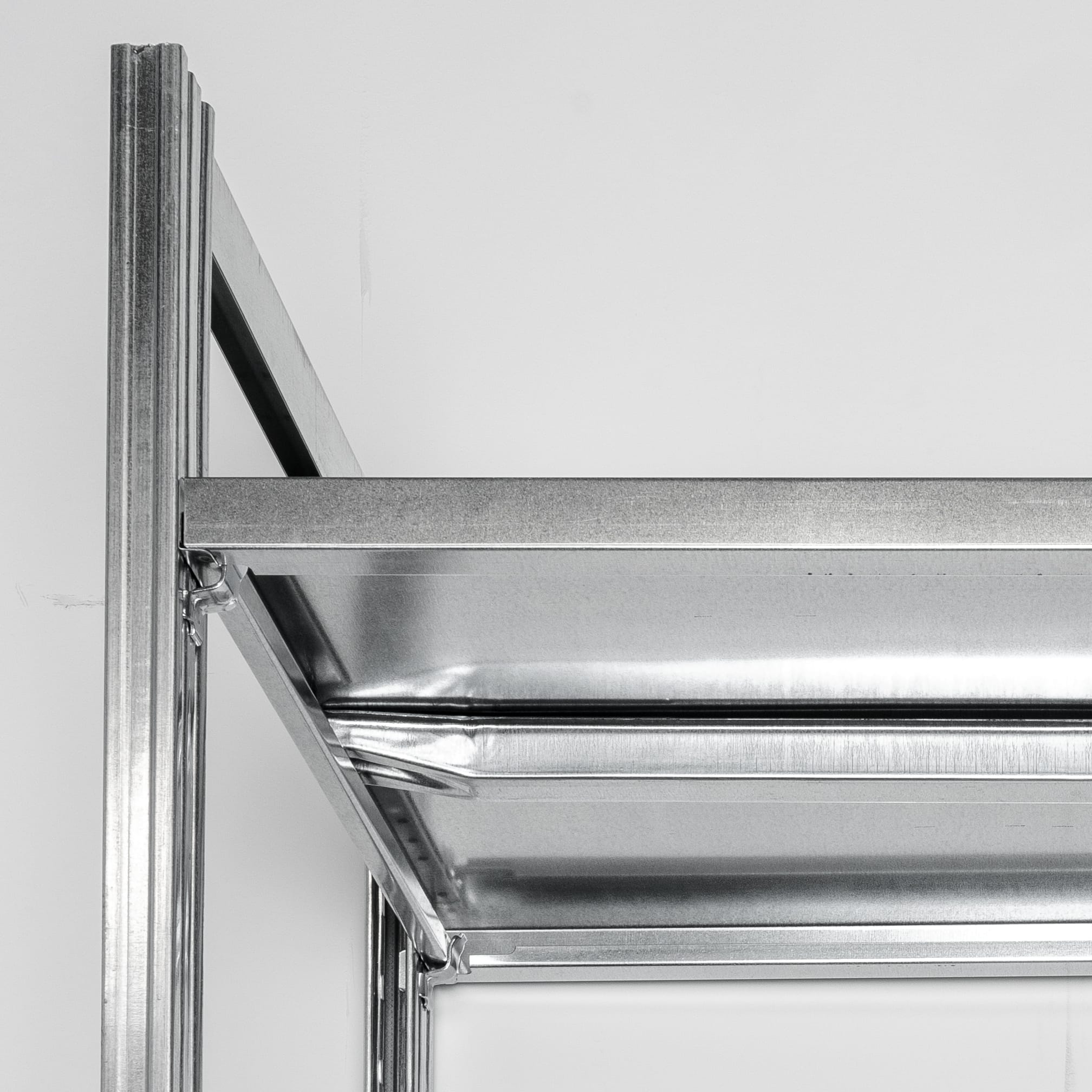 De stalen frames zorgen voor een hoge weerstand tegen roest en slijtage. Je bepaalt zelf of ze verzinkt of gepoedercoat moeten zijn. De legbordstellingen worden geleverd met een stabiele, verzinkte stalen bodem. Alle gebruikte materialen bieden je een hoogwaardige en duurzame opslagoplossing.