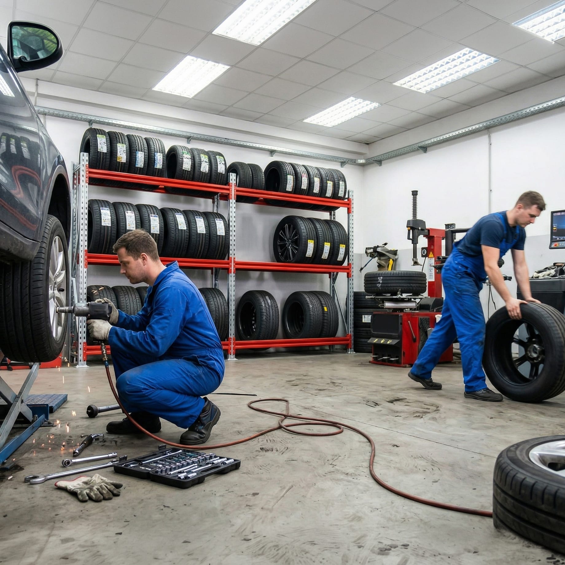 Reifenregale sind speziell entwickelte, stabile Lagerlösungen für die fachgerechte und platzsparende Aufbewahrung von Pkw-, Transporter- und Lkw-Reifen. Sie ermöglichen eine übersichtliche Organisation und schützen Reifen zuverlässig vor Verformung und Beschädigung. Durch ihre robuste Konstruktion eignen sich Reifenregale ideal für den Einsatz in Werkstätten, Autohäusern, Lagerhallen und im Reifenhandel.